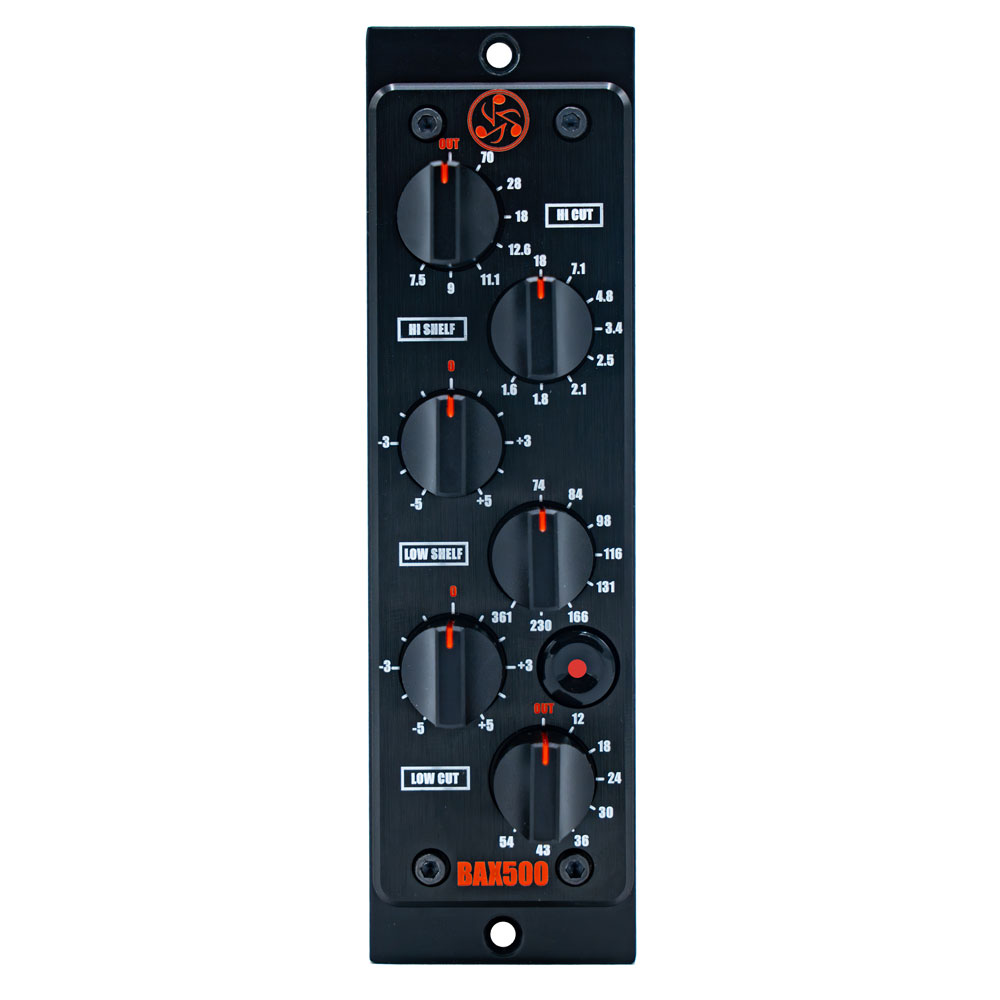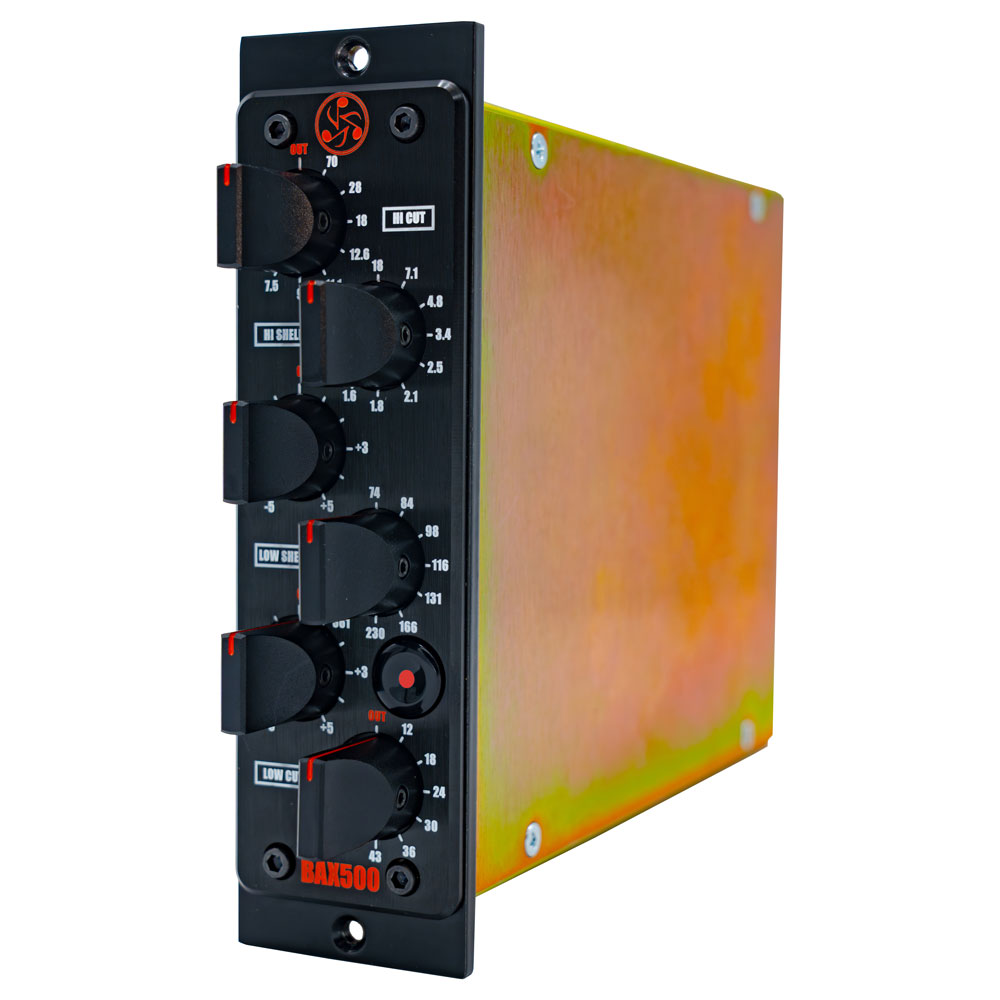 Ecualizador Baxandall en formato 500-series con estantes de banda ancha y filtros High Cut y Low Cut para control preciso de los extremos de frecuencia.