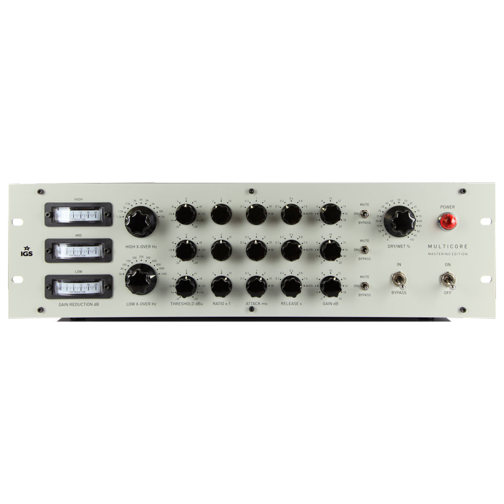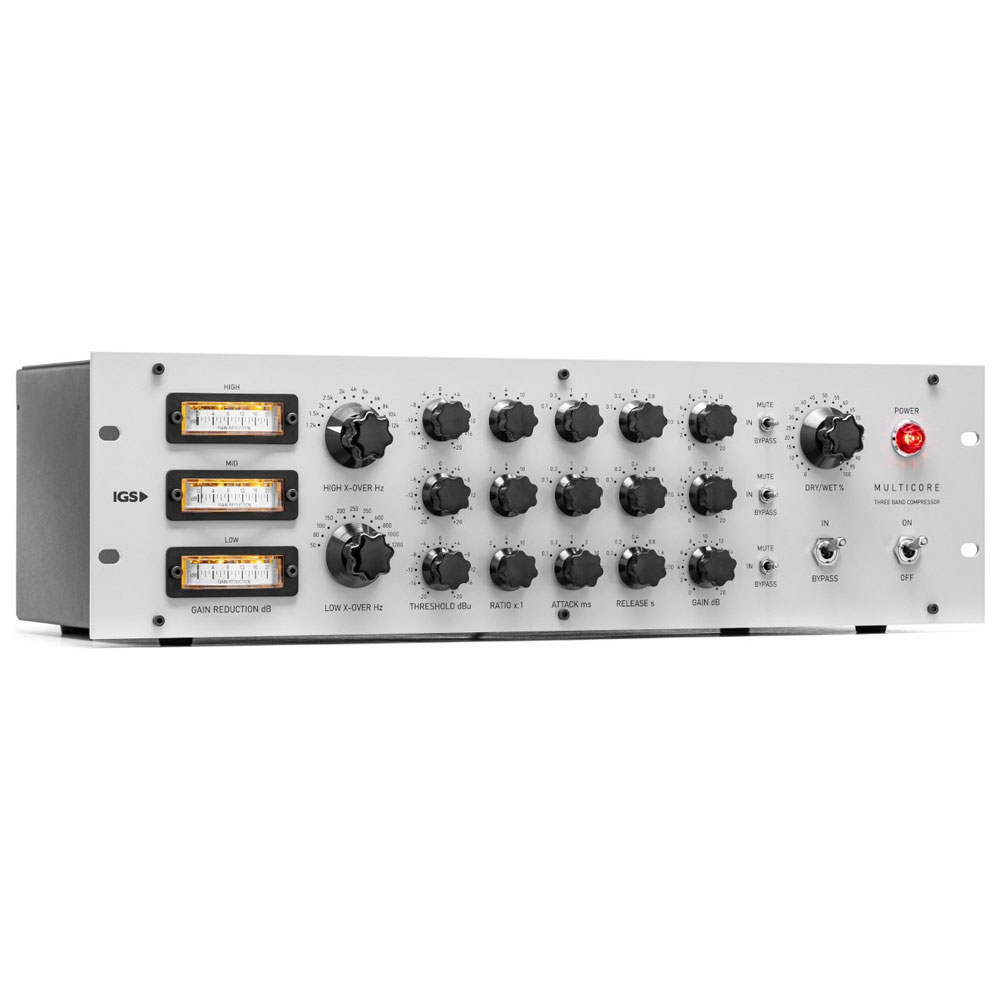 Compresor multibanda analógico de tres bandas con módulos VCA independientes y crossover activo ajustable. Permite controlar dinámica por rango de frecuencia con precisión, tanto en mezcla como en mastering.